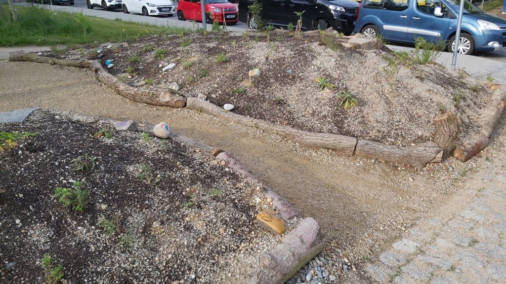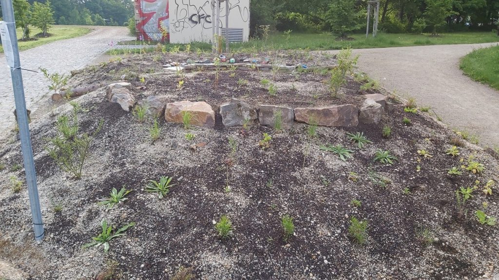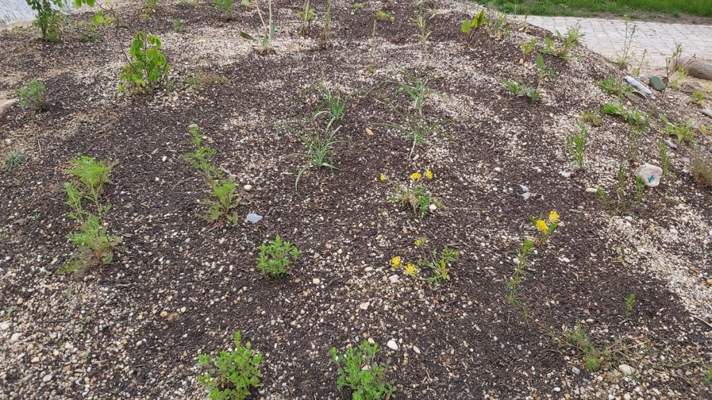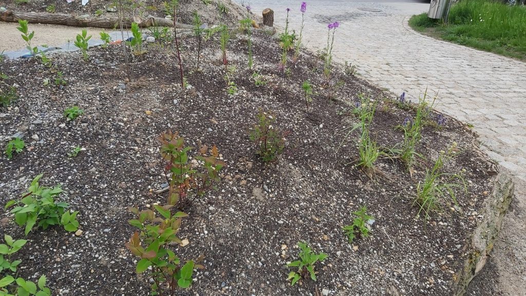 Die ersten Tage nach der Bepflanzung des Beetes wurde fleißig gegossen. Die Pflanzen wachsen gut an.